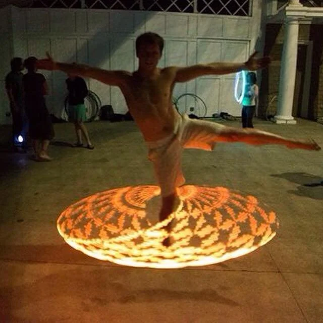 Right now I’m working on a lot of foot tricks, which I’ve avoided practicing heavily for quite some time. I want to be able to hoop standing vertically with my foot above my head, rotating horizontally on that foot. I don’t know if I’ll ever be able to be that flexible, but I think it’s worth a shot! It’s not something you see many guy hoopers do, that’s for sure. I’ve played a lot with floor hooping and foot hooping on the floor and have some ridiculously fun breakdance-style tricks I’ve been playing with. I’m always working on about 30 things, so progress can be slow, but I’m somewhat ADD with it and jump around too much…